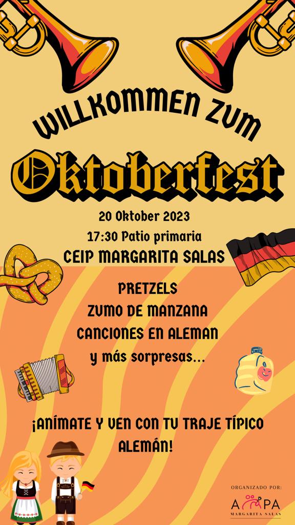 Nuestra versión del Oktoberfest acerca la cultura alemana a las familias del Margarita Salas. En la última edición todos pudimos disfrutar de zumo de manzana con gaseosa, como sustituto de la cerveza y los famosos pretzels. Además, hubo una zona de photocall para crear recuerdos de la fiesta y un taller para hacer sombreros.